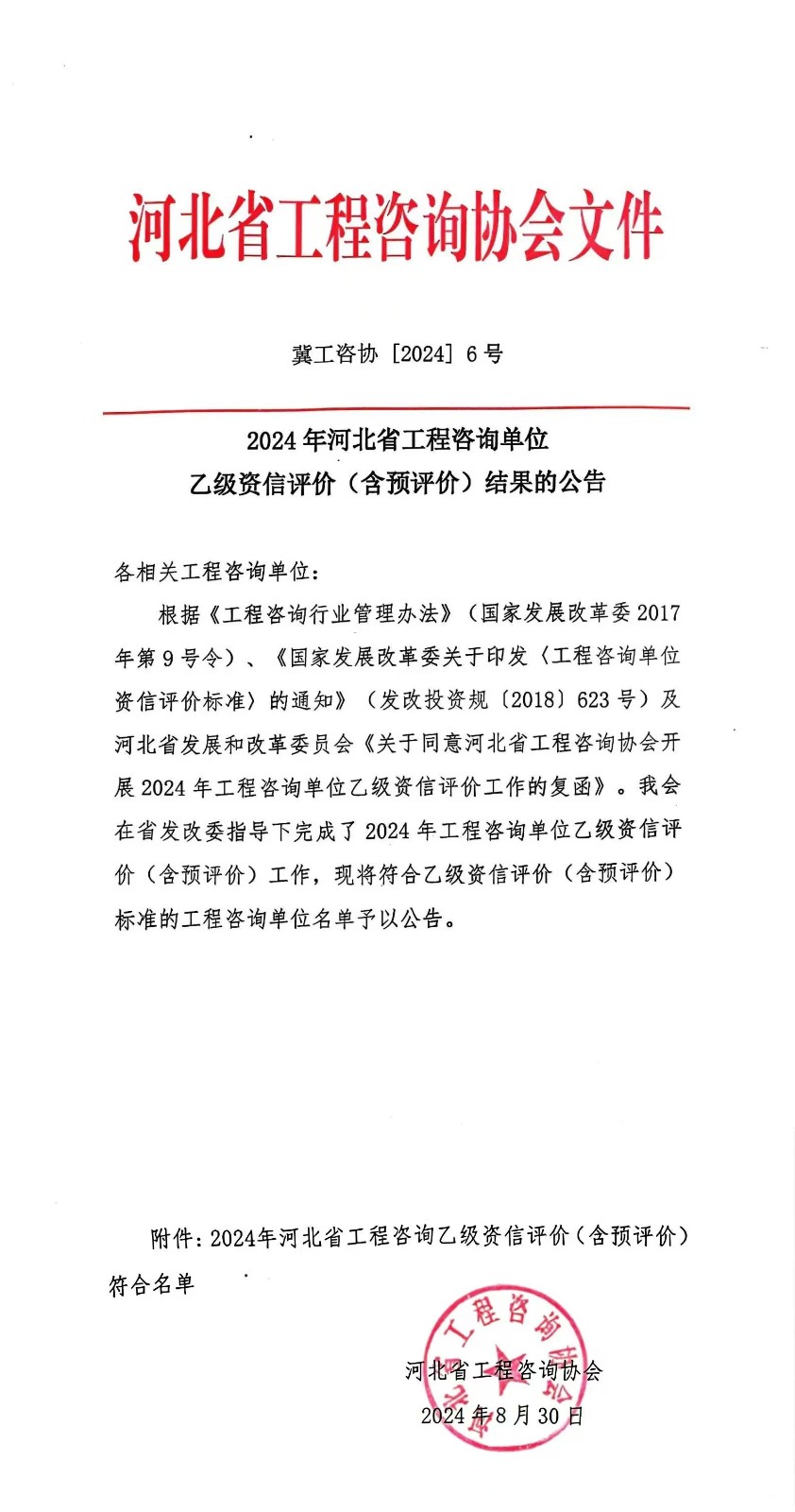 2024年8月30日,河北省工程咨詢協會發布《2024年河北省工程咨詢單位乙級資信評價(含預評價)結果的公告》,河北華飛工程設計有限公司(以下簡稱“華飛工程”)成功延續工程...