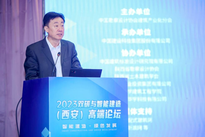 當前,建筑行業正經歷著深化改革、轉型升級和科技跨越同步推進的發展過程,推動實施智能建造,在建筑全生命周期內實現節材省工、節能減碳的目標,已成為推動傳統建筑行業轉型升級,推動建筑業實現高質量發展的重要抓手。在此背景下,中國勘察設計協會建筑產業化分會于4月14日在西安主辦主題為“智能建造 綠色發展”的 2023 雙碳與智能建造(西安)高端論壇,中國勘察設計協會理事長朱長喜,住建部科技與產業化發展中心副主任武振,陜西省勘察設計協會黨支部書記茹廣生,中國勘察設計協會建筑產業化分會會長、中國建設科技集團副總裁劉志鴻出席會議并講話。